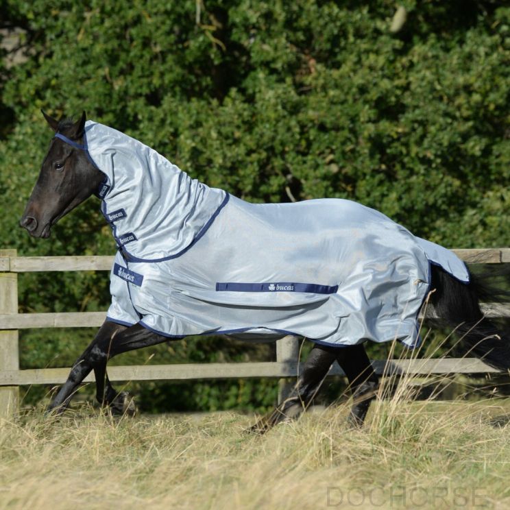 It gives the choice to protect only the body of the horse, or both the body and the neck of the horse by attaching the neck part. The neck has a loop over the ears so that it stays in place.