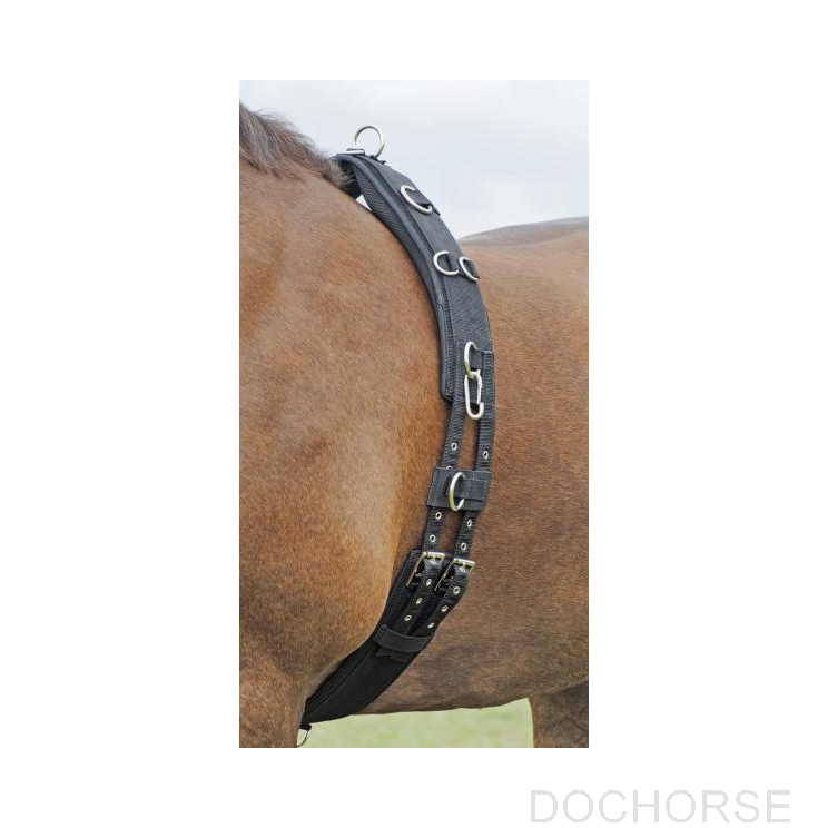 Lunging girth made of easy-care nylon including withers pads and skin-friendly rubber padding inside. Double girthing at both sides with roller buckles. Also in pony sizes!