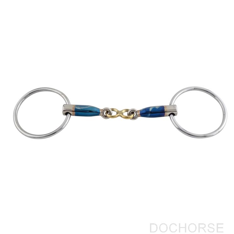 The French link is a double jointed bit with a flat, tapered lozenge. When using the rein aids the whole surface of the mouthpiece lies on the tongue and creates a "spotted pressure